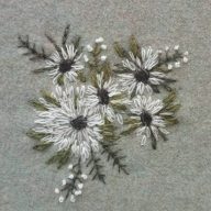 + Some small botanical embroideries on silk. The fabric was formerly a favourite top of mine that wore out, and I didn't want to throw it away. I sewed the little embroideries up into pouches and filled them with dried lavender from the garden.